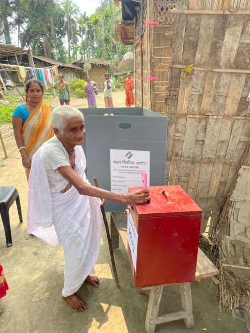 Nagaon: The voting process commenced in Nagaon district from Thursday. As part of the special arrangements made by the Election Commission to enable citizens aged above 80 and persons with disabilities to cast their votes, the Nagaon district administration organized door-to-door voting facilities (Home Voting Nagaon).